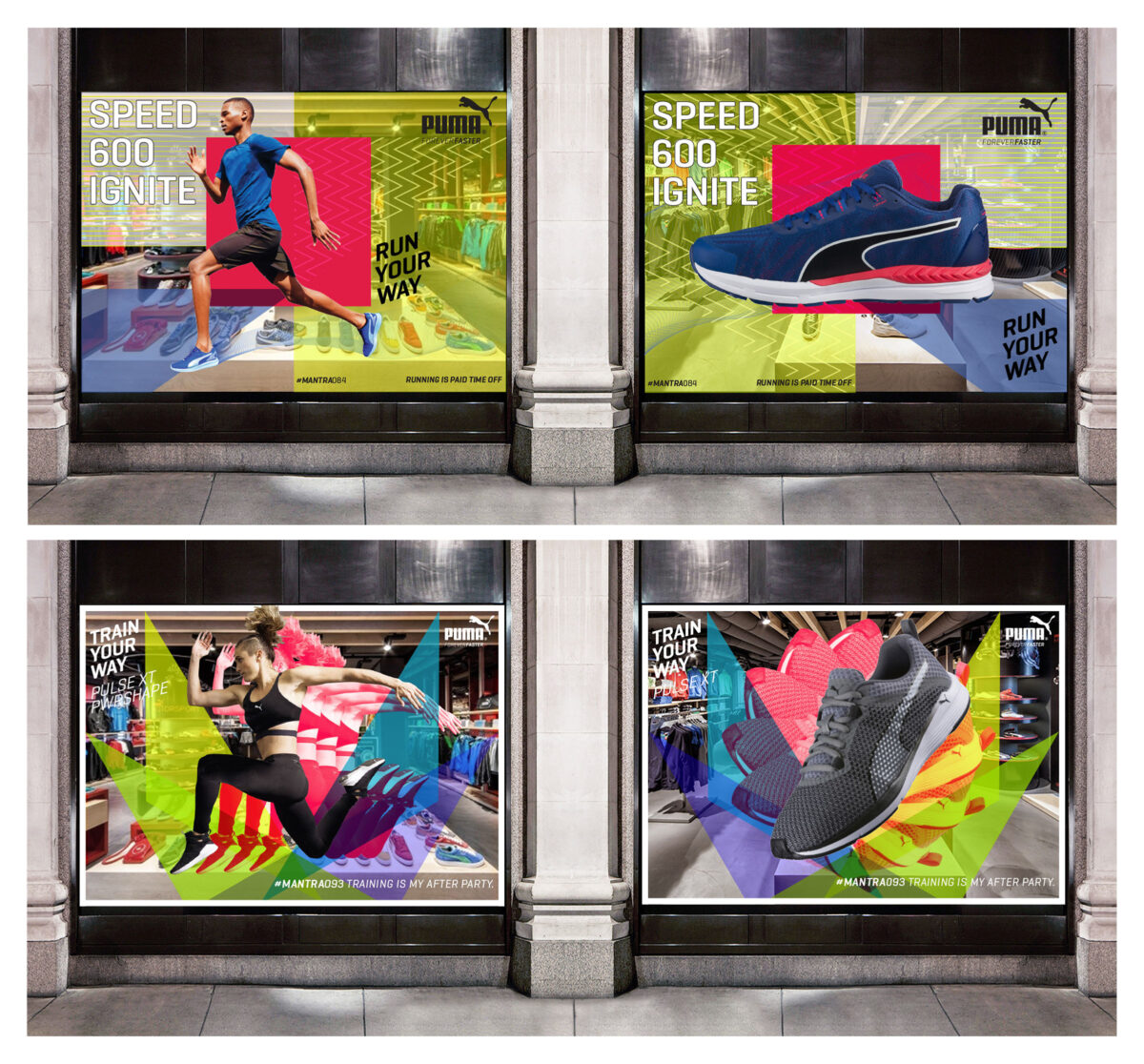Retail – Puma running Window Displays – Juliet Zulu